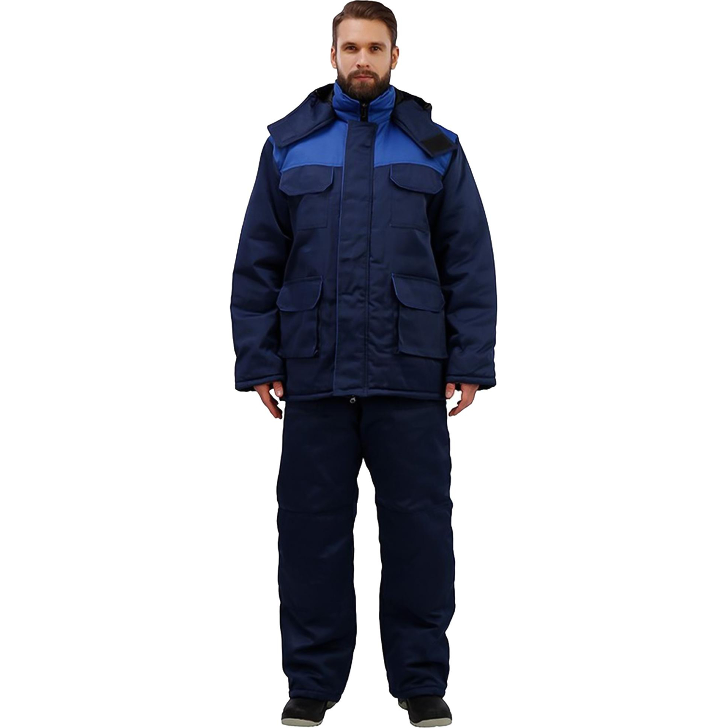 Костюм рабочий зимний мужской з12-КПК синий/васильковый (размер 44-46, рост 182-188). Рекомендован для использования в сельском хозяйстве, логистике, легкой промышленности, строительстве, озеленении. Изготовлен из смесовой ткани Грета с водоотталкивающей пропиткой (80% полиэстер, 20% хлопок, плотность 190 г/кв.м). Утеплитель из синтепона, плотностью — 360 г/кв.м (основа) 3 слоя по 120 г/кв.м и 240 г/кв.м (руки/ноги) 2 слоя по 120 г/кв.м. Материал подкладки — 100% полиэстер. Защитные свойства: —Защищает от пониженных температур. Куртка застегивается на молнию и контактную ленту, оснащена отстегивающимся регулируемым капюшоном и напульсниками, усиленными налокотниками, а также имеет нагрудные и боковые накладные карманы с клапанами, и внутренний карман. Полукомбинезон классического покроя с усилением в области колен и боковыми карманами, застегивается на молнию. Соответствует ГОСТ 12. 4. 303-2016. Подобрать размер Цвет на изображении товара в интернет-магазине или в печатном каталоге может отличаться от оригинала из-за особенностей цветопередачи монитора.
