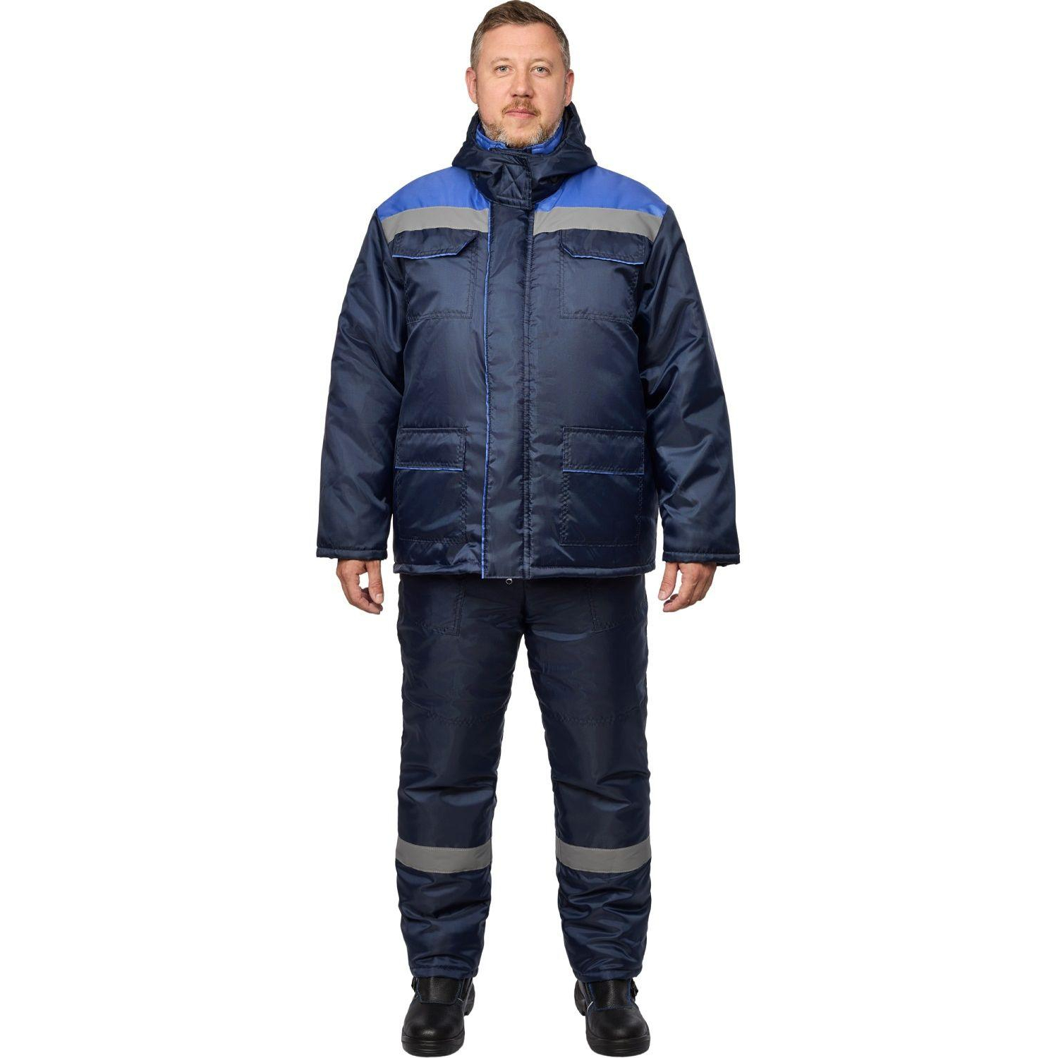 Костюм рабочий зимний мужской з12-КПК с СОП синий/васильковый (размер 44-46, рост 158-164). Состоит из куртки и полукомбинезона. Предназначен для использования в сферах логистики, строительства, ЖКХ, сельского хозяйства, лёгкой и тяжелой промышленности, автомобильной промышленности. Ткань основная: «Оксфорд» (100% полиэстер) плотностью 90 г/кв.м, с водоотталкивающей отделкой. Утеплитель — синтепон, 360 г/кв.м (основа), 240 г/кв.м (рукава/полукомбинезон).Подкладка: 100% полиэстер. Куртка прямого силуэта, удлиненная, с центральной застежкой на молнию и липучки. На куртке 2 верхних и два нижних накладных кармана с клапанами. На верхней левой стороне подкладки накладной карман. С внутренней стороны рукавов нашиты напульсники. Утепленный регулируемый капюшон отстегивается. Ширина талии регулируется кулиской. Светоотражающая лента шириной 50 мм расположена по кокеткам полочки, спинки. Полукомбинезон прямого силуэта, с центральной застежкой на молнию и двумя накладными карманами с наклонным входом. По линии талии располагается лента эластичная для улучшения посадки. Бретели с эластичной лентой, регулируются фастексами. Светоотражающая лента шириной 50 мм настрочена по низу полукомбинезона. Защитные свойства: — Тн — защита от пониженных температур. — З — защита от общих производственных загрязнений. Соответствует стандартам ГОСТ 12.4.303-2016, ТР ТС 019/2011. Подобрать размер Цвет на изображении товара в интернет-магазине или в печатном каталоге может отличаться от оригинала из-за особенностей цветопередачи.