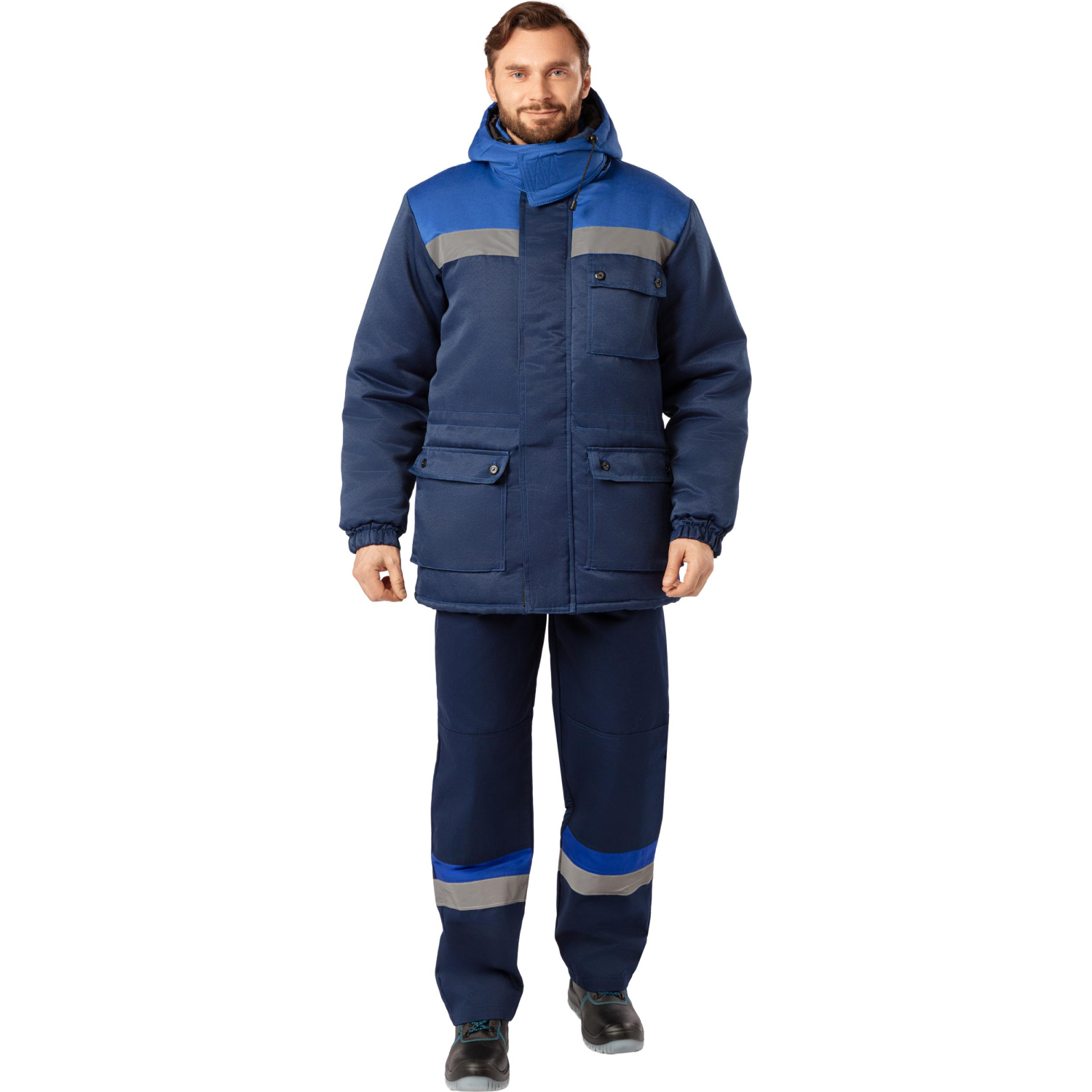 Куртка рабочая зимняя мужская з08-КУ с СОП синяя/васильковая из ткани грета (размер 48-50, рост 158-164) Рекомендована для использования в сельском хозяйстве, логистике, лёгкой промышленности, строительстве.Изготовлена из смесовой ткани (80% полиэстер, 20% хлопок) с водоотталкивающей пропиткой, плотность ткани — 190 г/кв.м. Утеплитель из синтепона, плотностью — 390 г/кв.м (основа) 3 слоя по 130 г/кв.м. и 260 г/кв.м (руки) 2 слоя по 130 г/кв.м. Материал подкладки — 100% полиэстер. Защитные свойства: — Защищает от общих производственных загрязнений.— Защищает от пониженных температур. Куртка с центральной застёжкой на молнию, ветрозащитным клапаном. Кокетка полочек и спина отделаны тканью с СОП. На куртке есть два накладных кармана и отстёгивающийся капюшон. Имеется светоотражающий кант. Соответствует ГОСТ 12.4.303-2016, ТР ТС 019/2011. Подобрать размер Цвет на изображении товара в интернет-магазине или в печатном каталоге может отличаться от оригинала из-за особенностей цветопередачи монитора.