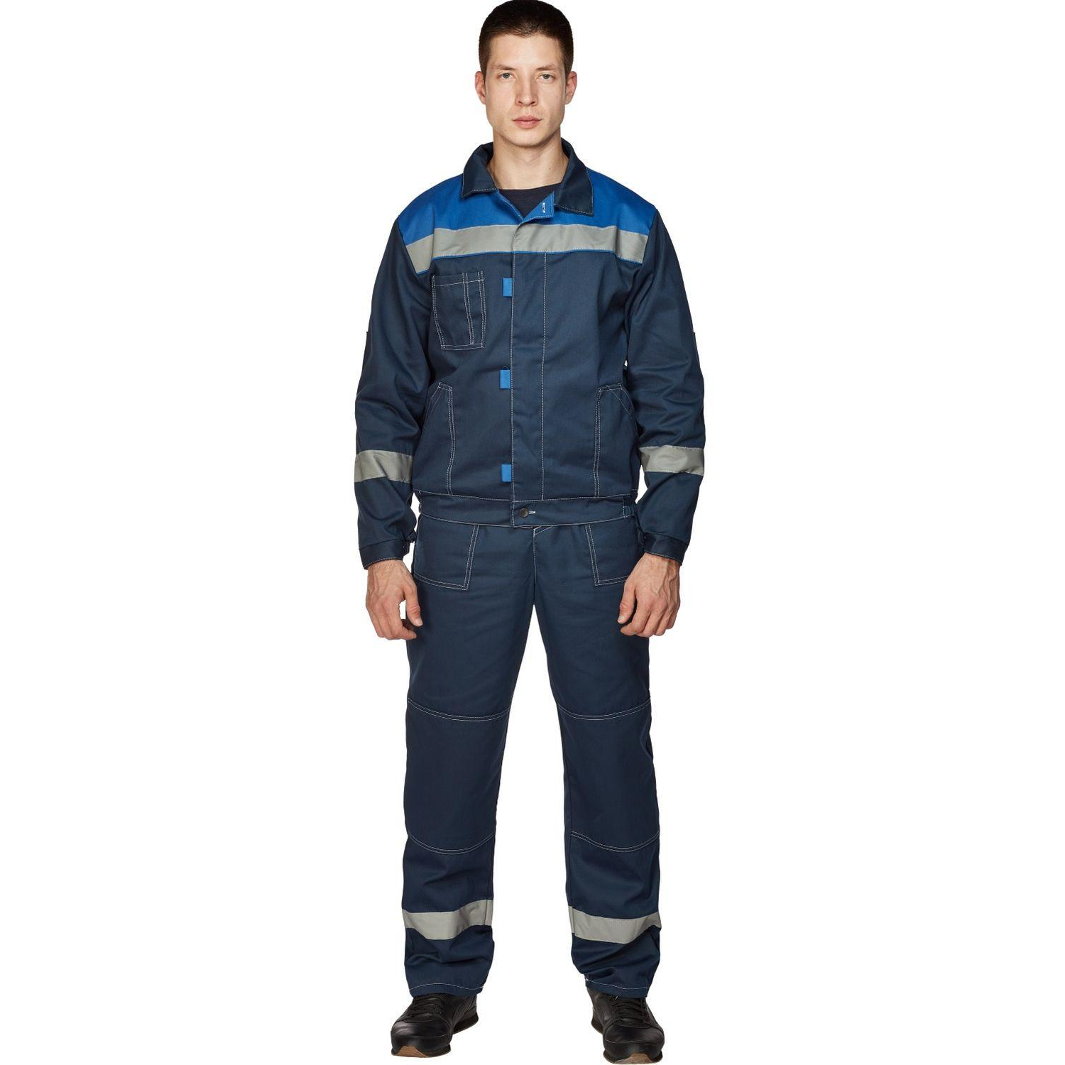 Костюм рабочий летний мужской л20-КБР с СОП синий/васильковый (размер 64-66, рост 182-188). Состоит из куртки и брюк. Костюм предназначен для использования в сферах логистики, строительства, ЖКХ, сельского хозяйства, лёгкой промышленности и озеленения. Ткань основная: смесовая (65% полиэстер, 35% хлопок), плотность 210 г/кв.м. Материал обладает водоотталкивающими свойствами, устойчив к истиранию и механическим повреждениям. Куртка с эластичной лентой по бокам имеет прямой силуэт, что обеспечивает свободу движений и комфорт при носке. Застёжка потайная на петлях и пуговицах. Верхняя и нижняя пуговицы на сквозных петлях. Воротник отложной. На куртке предусмотрены три накладных кармана: один нагрудный накладной двухсекционный, два нижних накладных с наклонным входом. Регулировка ширины манжет рукава при помощи пуговиц. Рукава выполнены с дополнительными налокотниками из основной ткани, для увеличения срока службы куртки. Светоотражающая лента шириной 50 мм расположена по кокеткам полочки, спинки, а также на рукавах. Брюки оснащены центральной застёжкой на молнии и пуговицей по поясу. На поясе расположены шлёвки для ремня. На брюках расположены два накладных кармана с наклонным входом. Дополнительные наколенники из основной ткани, для увеличения срока службы. Светоотражающая лента шириной 50 мм настрочена по низу брюк. Защитные свойства: — Ми — защита от механических воздействий: истирания. — З — защита от общих производственных загрязнений. Одежду рекомендуется стирать при температуре не выше 40 градусов. Не отбеливать, гладить при средней температуре. Костюм соответствует ГОСТ 12.4.280-2014 и ТР ТС 019/2011 Подобрать размер Цвет на изображении товара в интернет-магазине или в печатном каталоге может отличаться от оригинала из-за особенностей цветопередачи.