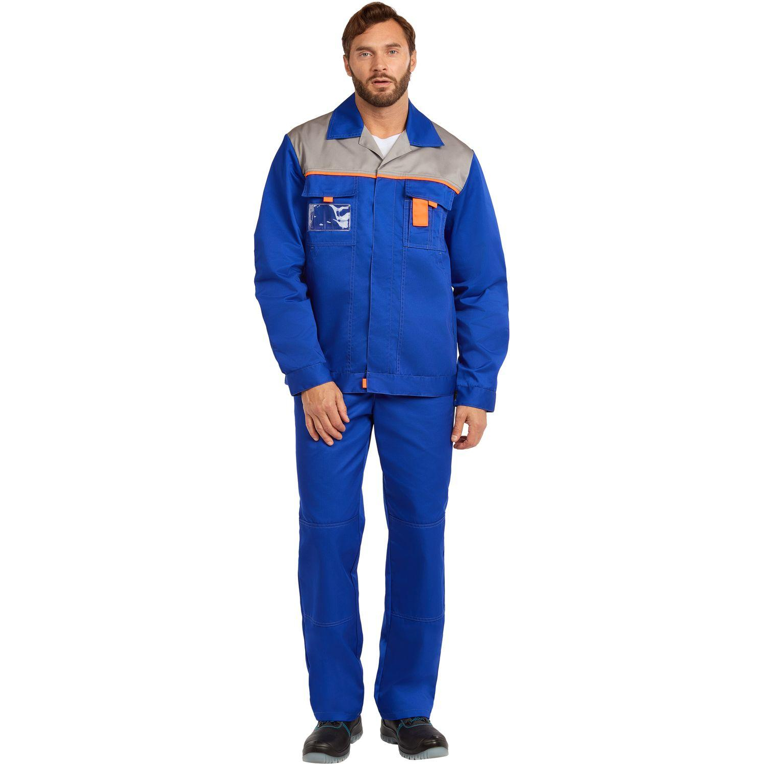 Костюм рабочий летний мужской модели л10-КПК выполнен в васильковом цвете с серыми и оранжевыми вставками. Размер 52-56, рост 158-164. Состоит куртки и полукомбинезона.Изготовлен из смесовой ткани с отделкой ВО (65% полиэстер, 35% хлопок). Плотность ткани- 240 г/кв.м. За счет оптимального соотношения хлопка и полиэфирных волокон дают высокие эксплуатационные характеристики, не мнется, костюм держит свою первоначальную форму даже после многократных стирок, не требует глажки, износостойкий. Благодаря матовой поверхности ткани, одежда выглядит презентабельно и аккуратно.Куртка с застежкой на молнию и контактную ленту. Многофункциональные карманы, специальный карман для телефона, окошко для бейджика. На спине куртки складки для свободы движения. Рукава с усилительными налокотниками, защищающими от истирания. Ширина пояса куртки регулируется патой. Полукомбинезон с многофункциональными карманами, с усилительными наколенниками. Бретели регулируются по длине.Костюм обеспечивает защиту от общих производственных загрязнений, от механических повреждений (истирания). Рекомендована в использовании таких отраслял, как агропромышленный комплекс, ЖКХ, организации торговли, бытовое обслуживание, гостиничный сервис, сервисные службы, клининговые службы, медицинский персонал организаций здравоохранения.Соответствует стандартам ТР ТС 019/2011, ГОСТ 12.4.280-2014.Подобрать размер