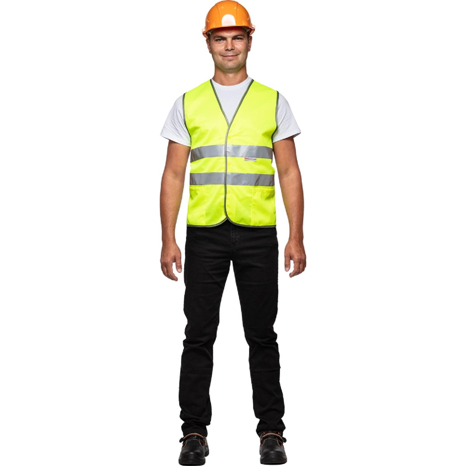 Жилет сигнальный Тип 2Т лимонный с СОП размер 4XL (64-66). Сигнальный жилет незаменим при проведении ремонтно-строительных работ на проезжей части, железной дороге и в других опасных зонах. Рекомендован для использования работниками коммунальных служб, водителями автомобилей, пешеходами и велосипедистами. Сочетание неонового лимонного цвета и светоотражающих полос обеспечивает его заметность как днем, так и в темное время суток. Жилет с двумя накладными карманами и центральной застежкой на пуговицы надевается поверх другой одежды.Изделие изготовлено из 100% полиэфира плотностью 120 г/кв.м и соответствует второму классу защиты. Ширина светоотражающей ленты — 50 мм. Дополнительно к типовому размеру применяется надбавка на свободу облегания, для использования с верхней одеждой.Коллекция сигнальных жилетов Тип Т. Класс риска: 2. Класс защиты: 2. Количество светоотражающих полос — 2.Подобрать размерЦвет на изображении товара в интернет-магазине или в печатном каталоге может отличаться от оригинала из-за особенностей цветопередачи.