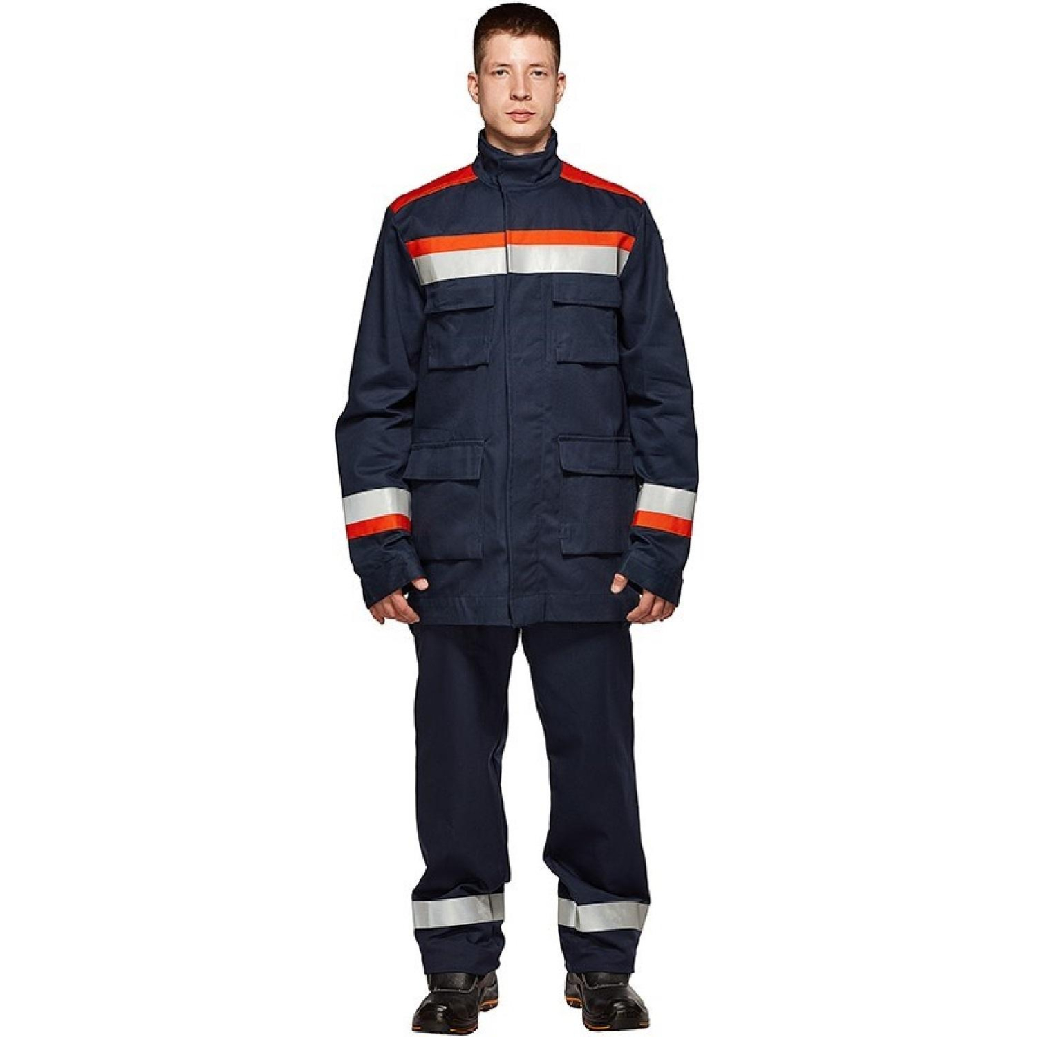 Костюм для защиты от электродуги Энергия летний синий/оранжевый (13.2 кал/кв. см, размер 52-54, рост 170-176).Унисекс костюм Энергия состоит из куртки и брюк, предназначен для ношения летом. Костюм синего цвета с оранжевыми вставками.Костюм изготовлен из термоогнестойкой антиэлектростатической смесовой ткани Флеймтуфф (Flametuff). Он на 88% состоит из хлопка и на 12% из полиамида, 2% которых занимает антиэлектростатическая нить. Плотность ткани составляет 305 г/кв. м.Костюм защищает от:• механических повреждений;• общепроизводственных загрязнений, масла и пятен нефтепродуктов;• теплового излучения;• конвективной теплоты;• кратковременного воздействия открытого пламени;• ЗЭТВ 13.2 кал/кв. см — защита от термического воздействия электрической дуги силой в 13.2 кал/кв. см.Костюм можно носить только вместе с хлопчатобумажным или термостойким бельем.Рекомендуется для использования:• на предприятиях энергетической сферы;• в электроэнергетике;• при проведении сварочных работ.Вся используемая фурнитура устойчива к химическим и термическим воздействиям.Куртка прямого кроя, с воротником «стойка». застёжка по борту потайная, на пуговицах. Кокетка заниженная, контрастная. На куртке есть 4 накладных кармана, на манжетах и по низу куртки есть утяжки. Брюки застегиваются на пуговицу. Пояс притачной, со шлевками. Соответствует стандартам: ТР ТС 019/2011Подобрать размер.Цвет на изображении товара в интернет-магазине или в  печатном каталоге может отличаться от оригинала из-за особенностей цветопередачи монитора.: