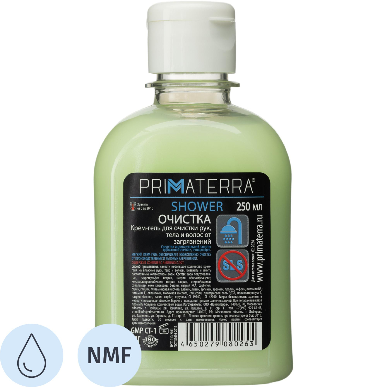 Крем-гель очищающий для кожи и волос Primaterra Shower предназначен для бережного очищения кожи и волос от различных видов легких производственных и бытовых загрязнений. Средство подходит для любого типа кожи, в том числе для сухой и чувствительной.Мягко очищает кожу и волосы, не раздражая и не пересушивая. Данный продукт имеет величину рН максимально приближённую к рН кожи. Крем-гель содержит кофеин, который улучшает кровообращение, мягкие поверхностно активные вещества, образующие обильную пену, а так же комплекс аминокислот Prodew 400, витамины В3, С, Е и аллантоин, обладающие увлажняющим и антиоксидантным действием. Молочная кислота служит для коррекции уровня рН, являясь физиологически родственным коже компонентом, входит в состав Натурального увлажняющего фактора. В состав крем-геля входит кондиционирующий компонент, обеспечивающий мягкость волос и кожи после применения.Соответствует стандартам: ТР ТС 019/2011, ГОСТ 31696-2012. Способ применения: Нанести небольшое количество крем-геля на влажные руки, тело и волосы. Вспенить и смыть достаточным количеством воды.Расход средства 0,5 — 1 мл на одно применение. Условия хранения от 0 С° до +30 С°. Срок годности 30 месяцев с даты изготовления/ 12 месяцев с момента вскрытия.