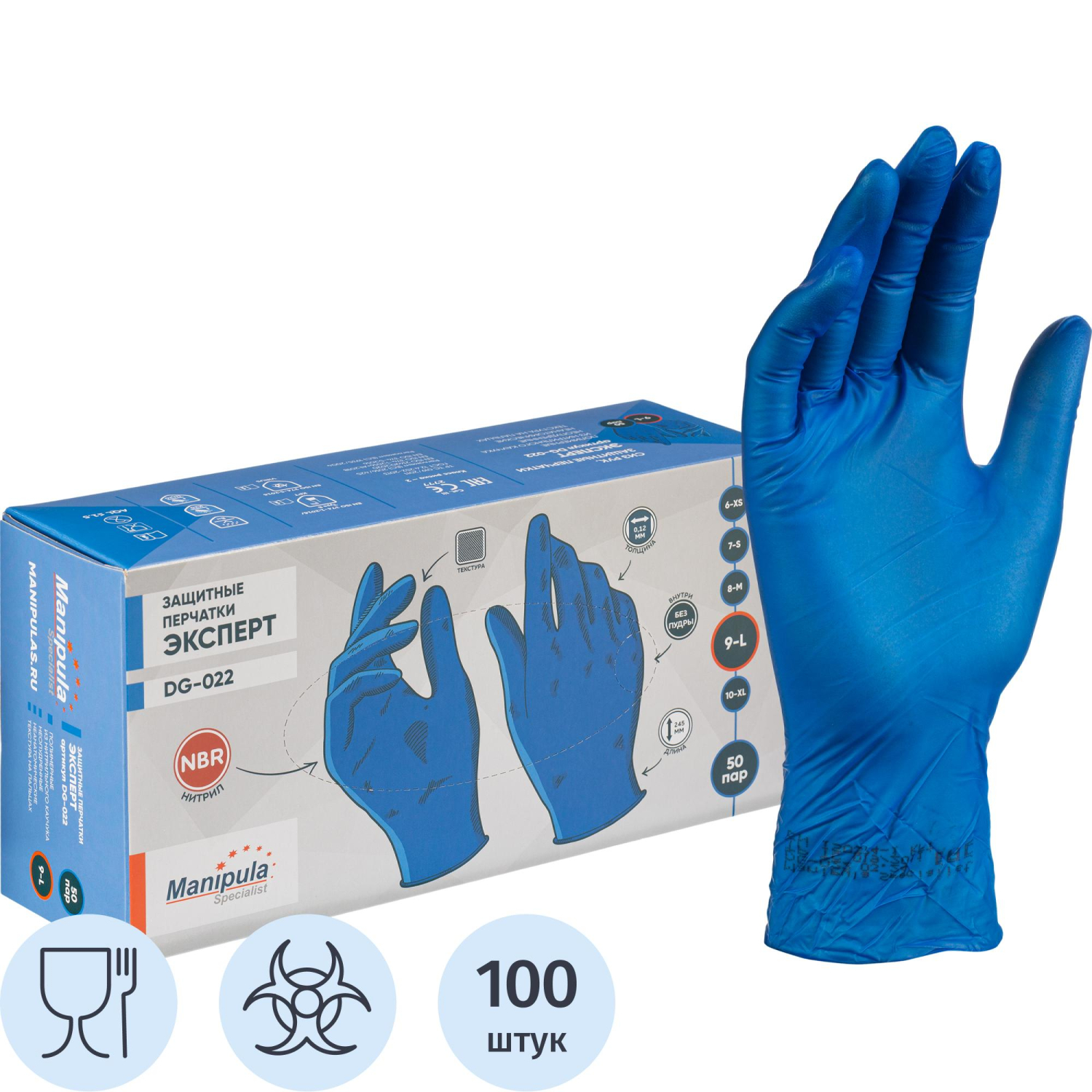 Перчатки одноразовые нитрил Manipula Эксперт (DG-022),р-р L,100шт/уп,ПС