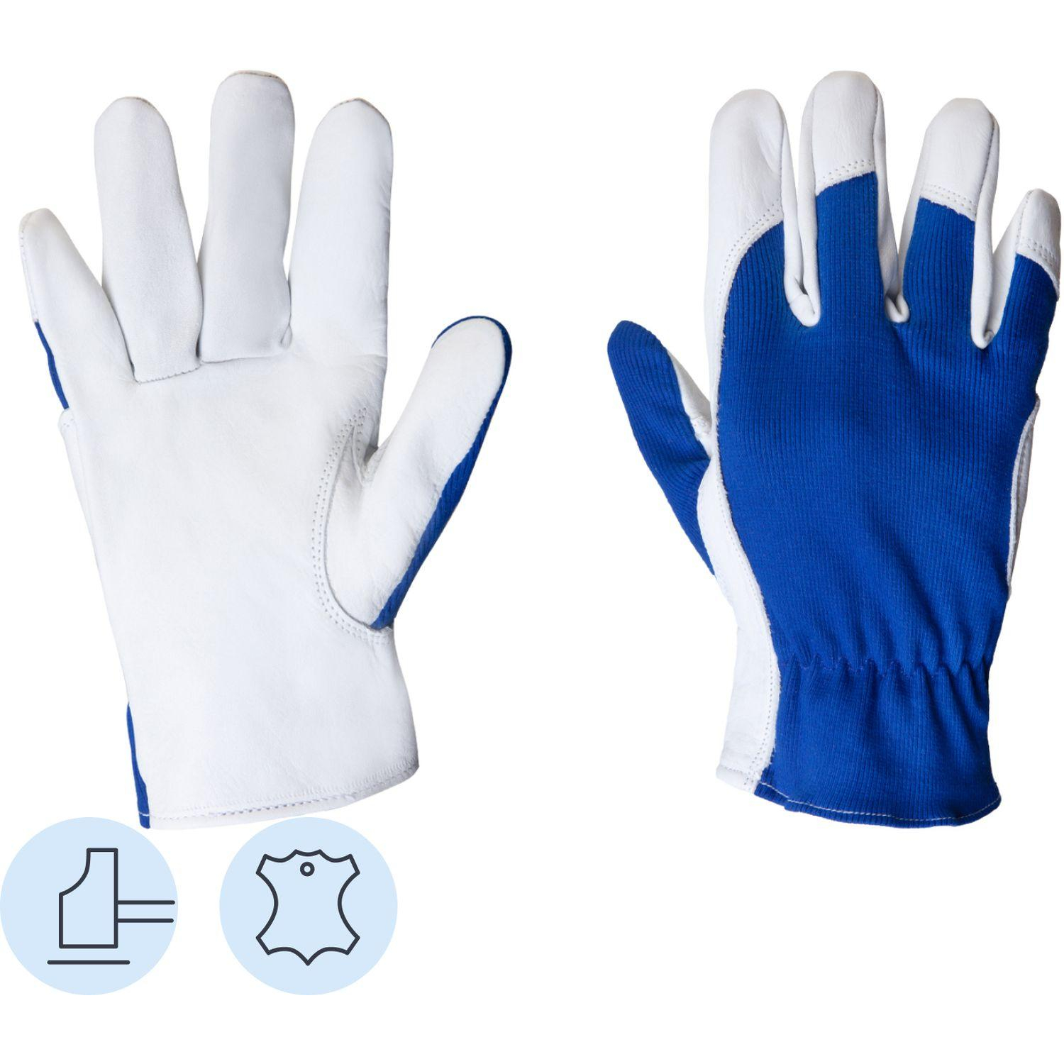 Перчатки кожаные рабочие JetaSafety JLE321-9 цв.синий/белый р.L