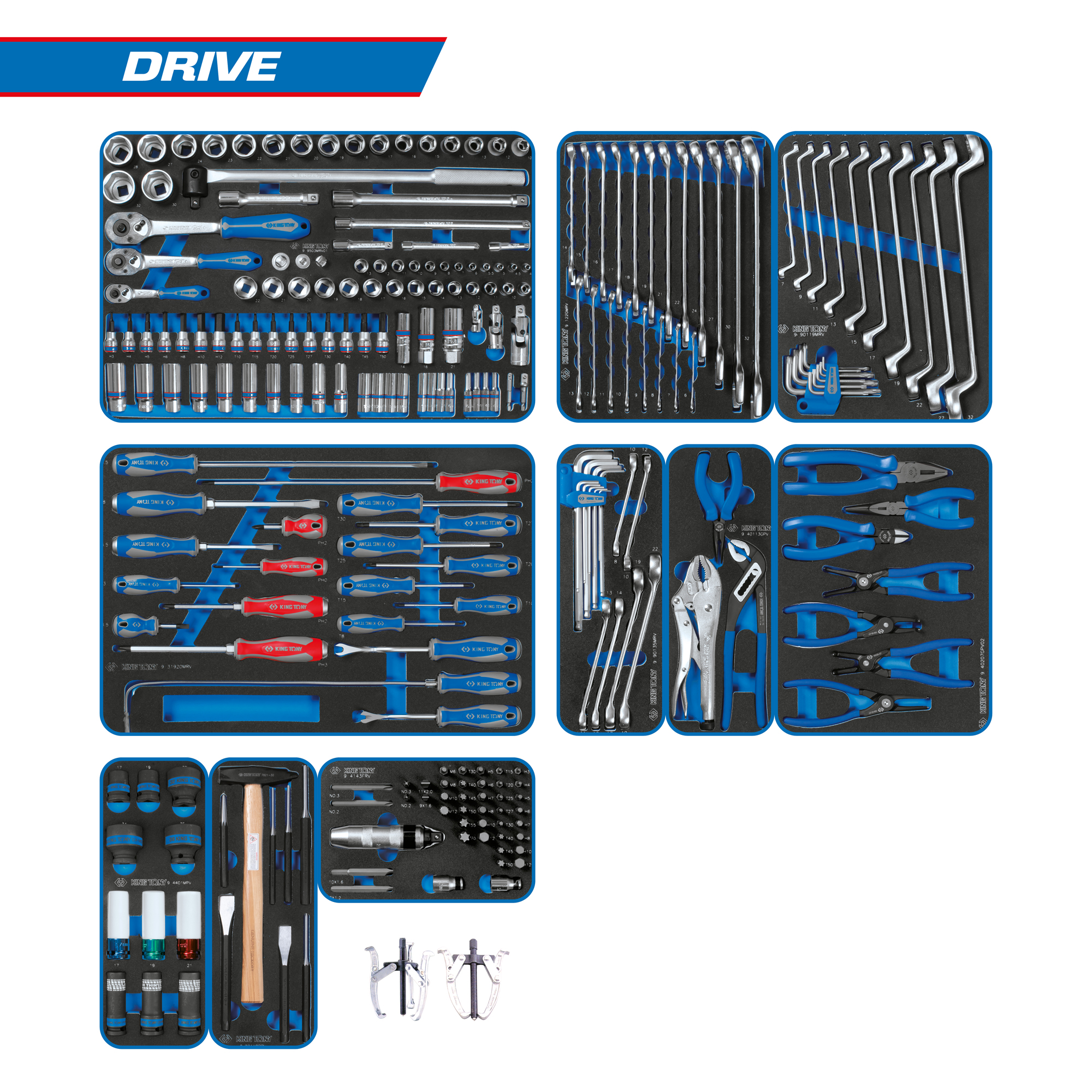Набор инструментов 251 предмет, "DRIVE", для тележки, 10 ложементов KING TONY 934-251MRVD