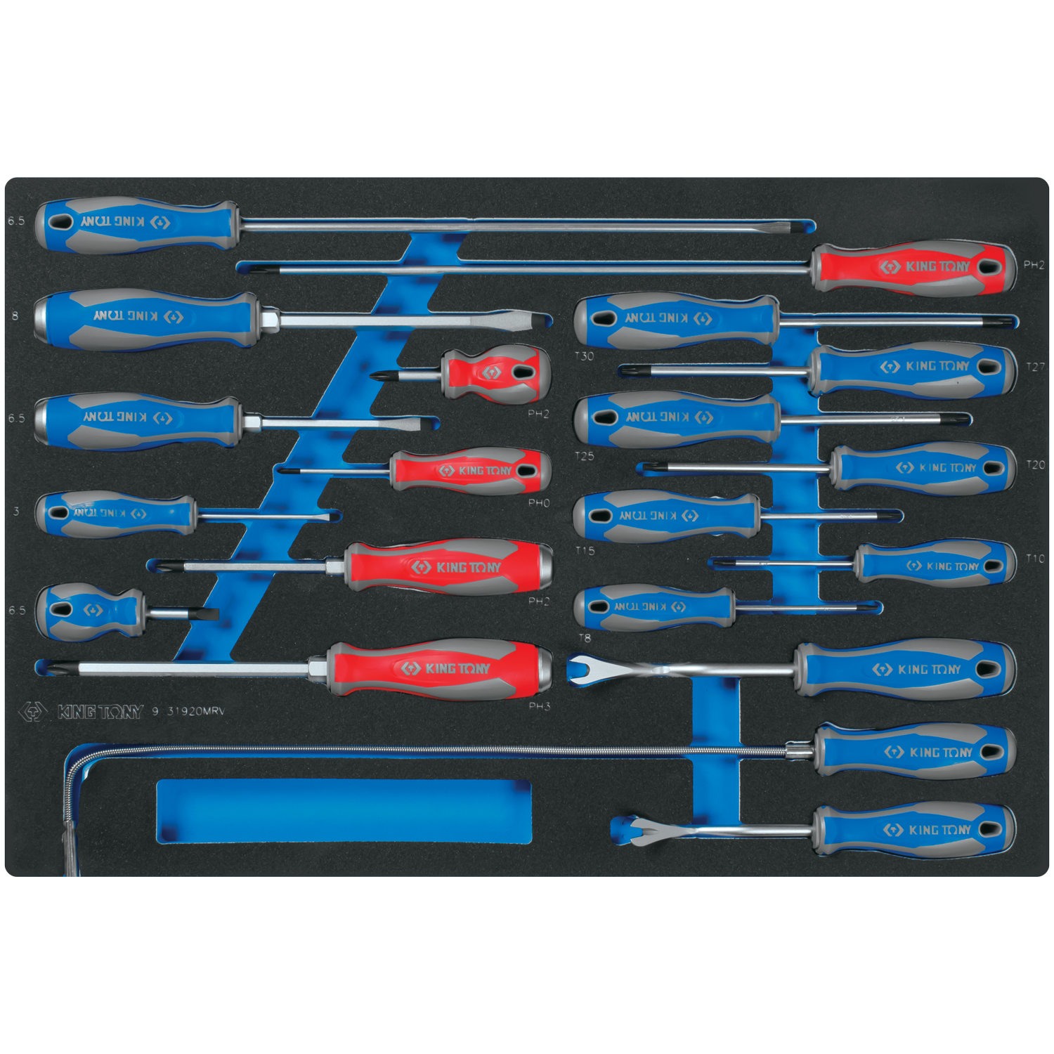 Набор отверток, съемник клипс и гибкий магнит, ложемент, 20 предметов KING TONY 9-31920MRV