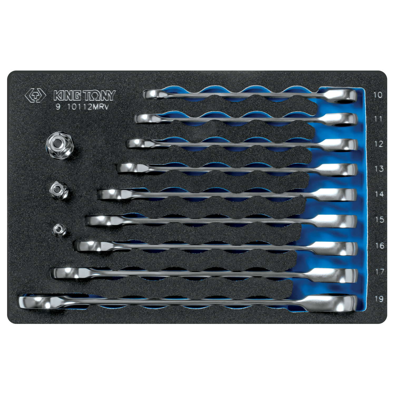 Набор комбинированных трещоточных ключей, 10-19 мм, ложемент, 12 предметов KING TONY 9-10112MRV