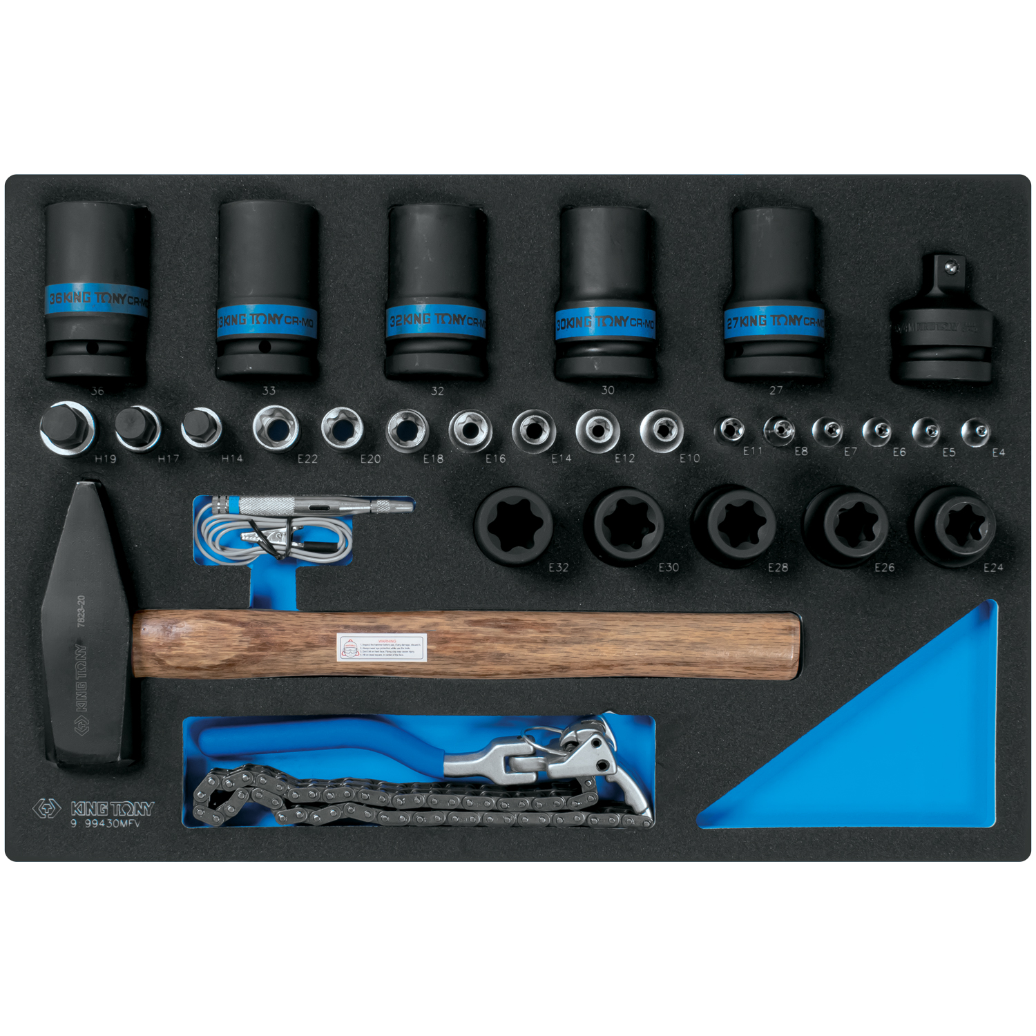 Набор ударных головок 1", головок Torx Е-стандарт, молоток, съемник, тестер, ложемент, 30 предметов KING TONY 9-99430MFV