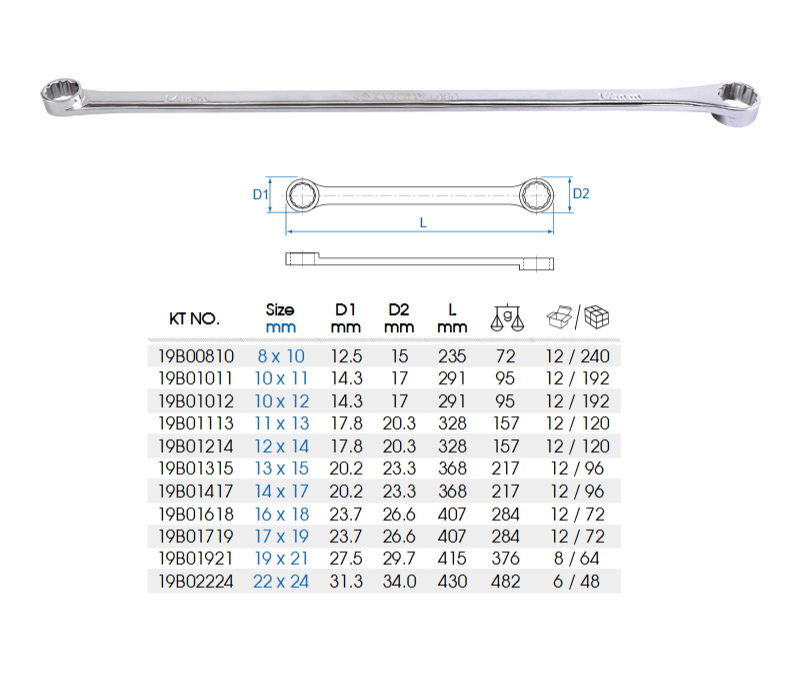 Ключ накидной 22х24 мм, прямой KING TONY 19B02224