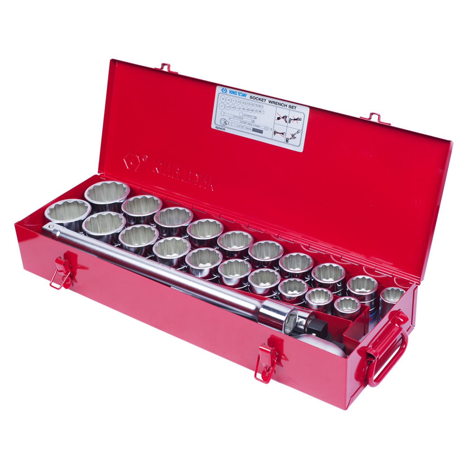 Набор торцевых головок с принадлежностями 3/4", двенадцатигранные, 22-50 мм, 1"-2", 24 предмета KING TONY 6224CR